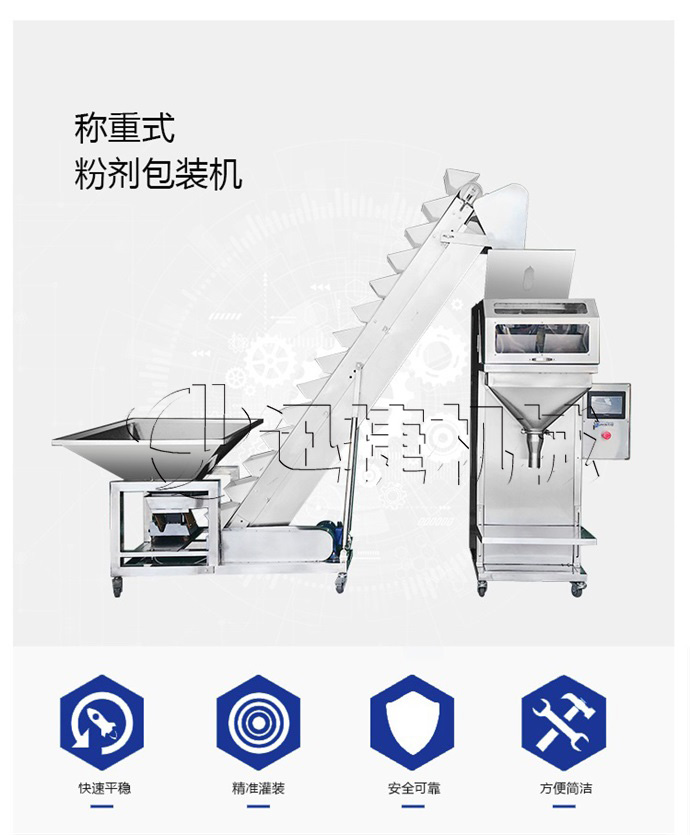 稱重式顆粒包裝機(jī)類似于定量包裝機(jī)能廣泛適用于農(nóng)藥、肥料、獸藥、飼料、預(yù)混料、添加劑、洗衣粉、食鹽、味精、雞精、白糖、種子、大米等粒狀、粉狀物料的定量包裝。