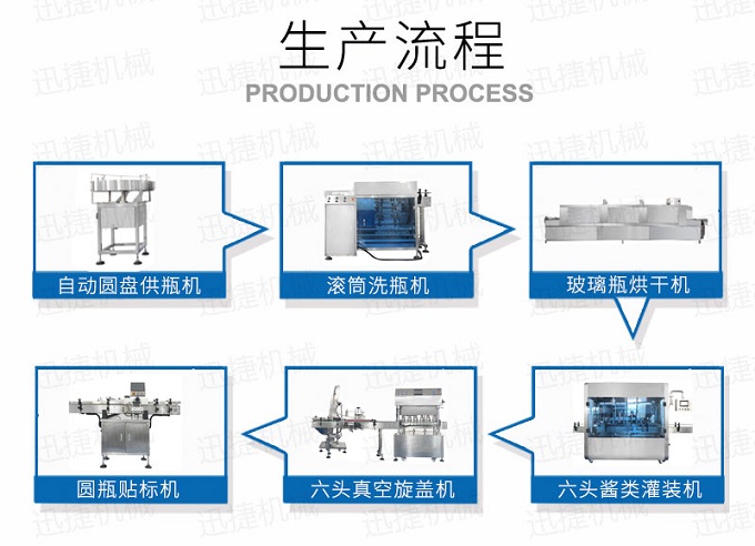 辣椒醬灌裝機(jī)采用活塞式灌裝原理,適用于調(diào)味品中帶顆粒并且濃度較大的辣椒醬、豆瓣醬、花生醬、香菇醬、果醬、牛油火鍋底料、紅油火鍋底料、蝦醬等較為粘稠醬類的灌裝。